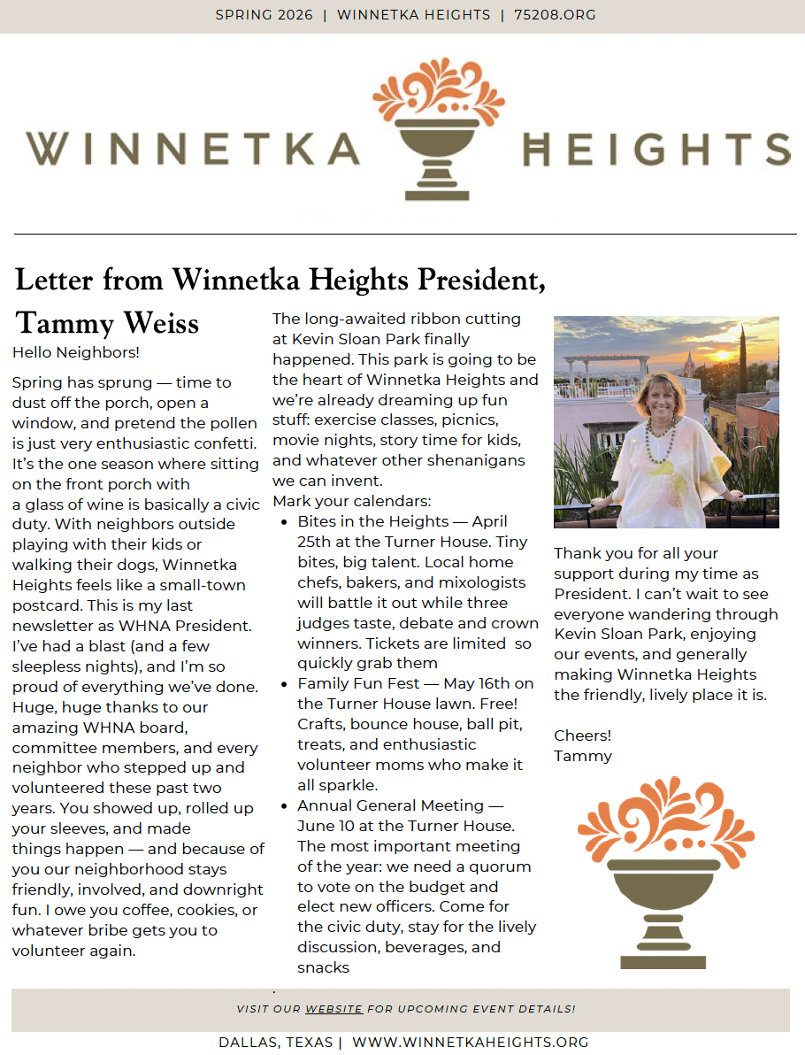Donate your time, skills, or suggested membership fee to the Winnetka Heights Neighborhood Association and watch it transform the community around you.